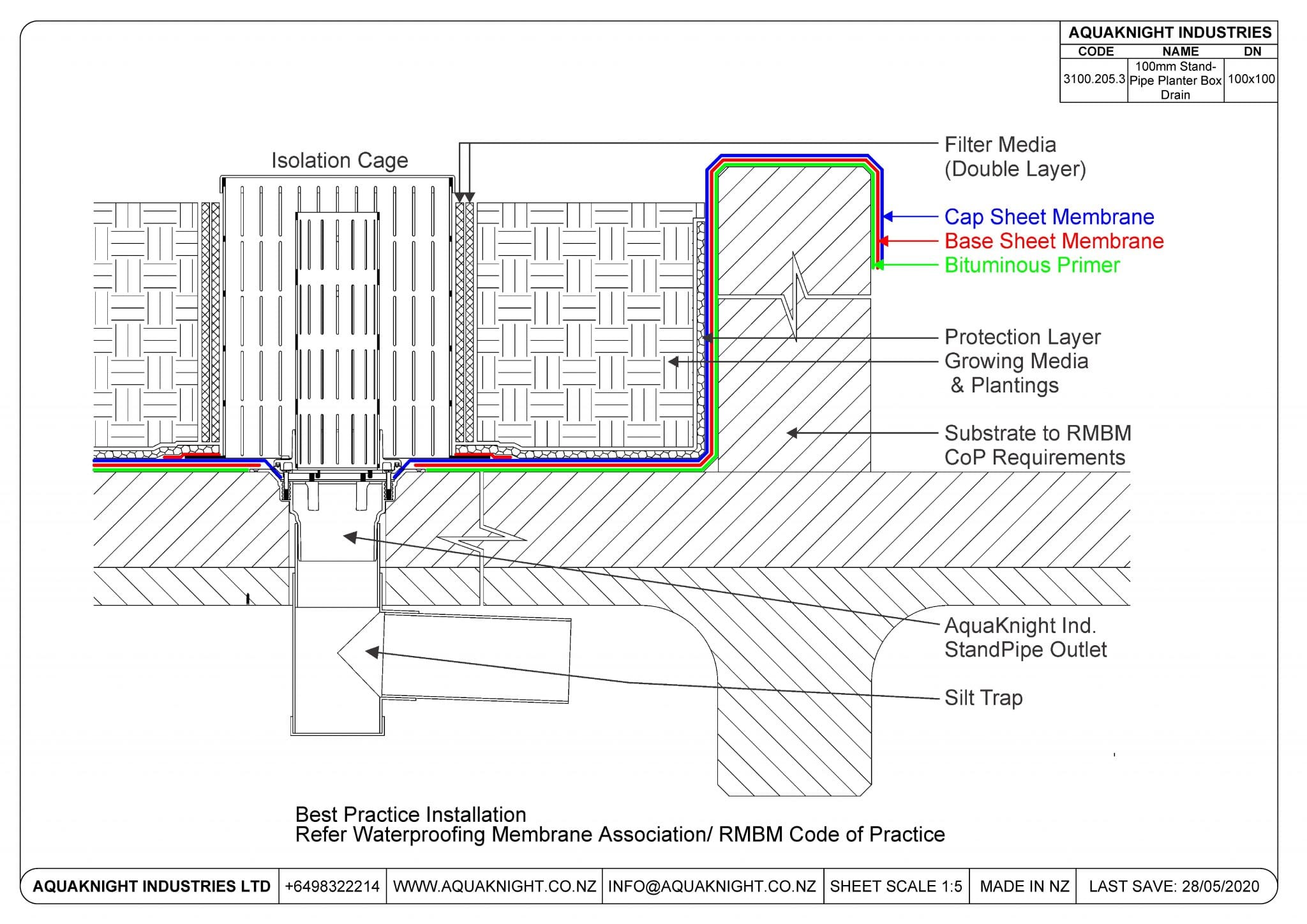 3100.205.3 StandPipe Planter Box Drain 100mm